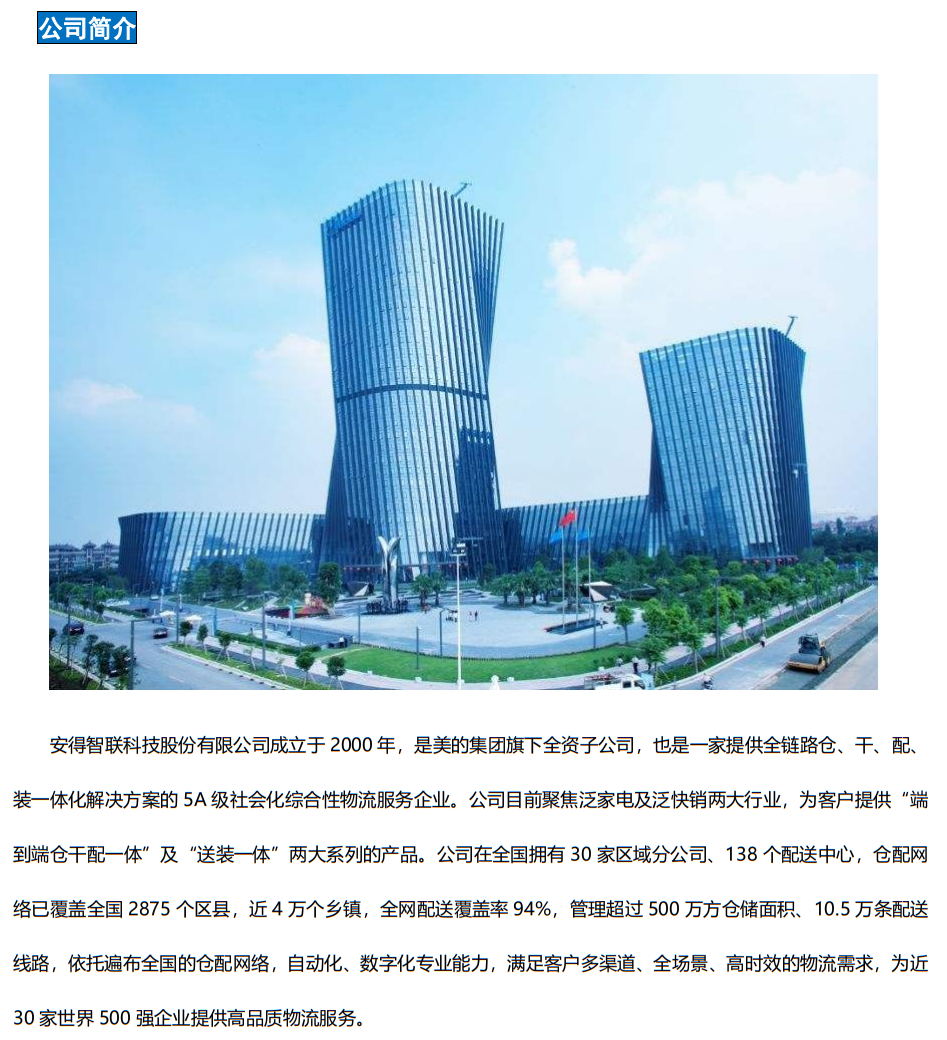 美的集团-安得智联科技股份有限公司四川分公司2020 年招聘简章