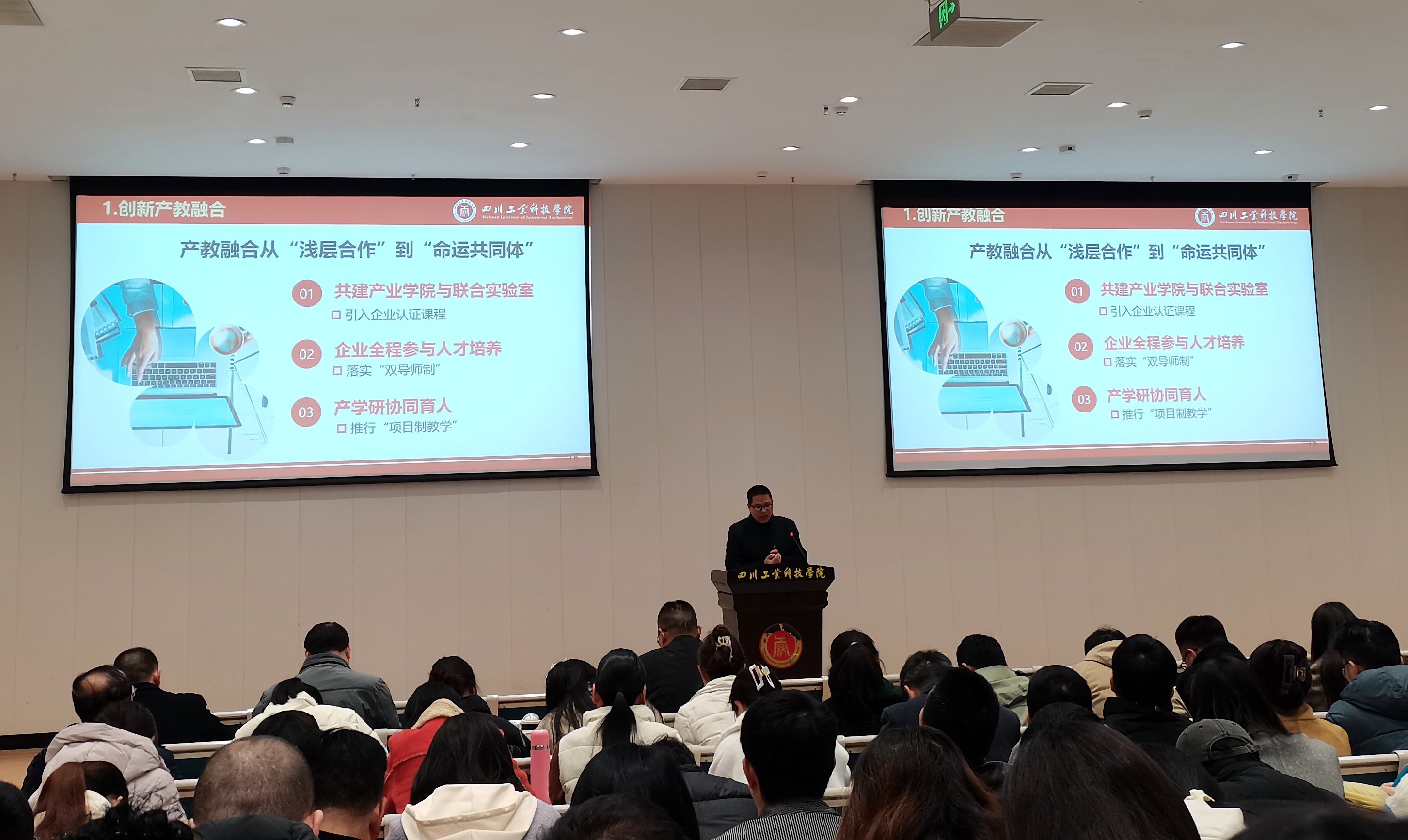 会上,执行院长龙厚彦带领全体教职工学习“新时代高教40条”,并从专业建设、服务地方经济、平台建设、课程开发、校企合作、协同育人、师资建设和评价体系八个方面,详细阐述了学院今后将重点推进的工作。他指出,应用型本科教育应以立德树人为根本、以国家需求为导向、以教学改革为动力、以协同育人为支撑,通过系统化改革全面提升人才培养能力,服务社会主义现代化强国建设。龙厚彦强调,学院教学工作要以政策引领与规范发展为中心,注重内涵建设与特色发展,促进产教融合与协同育人,最终实现教师队伍教学能力提升与教学质量监控强化。