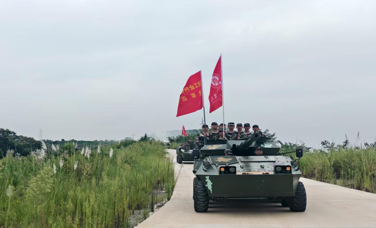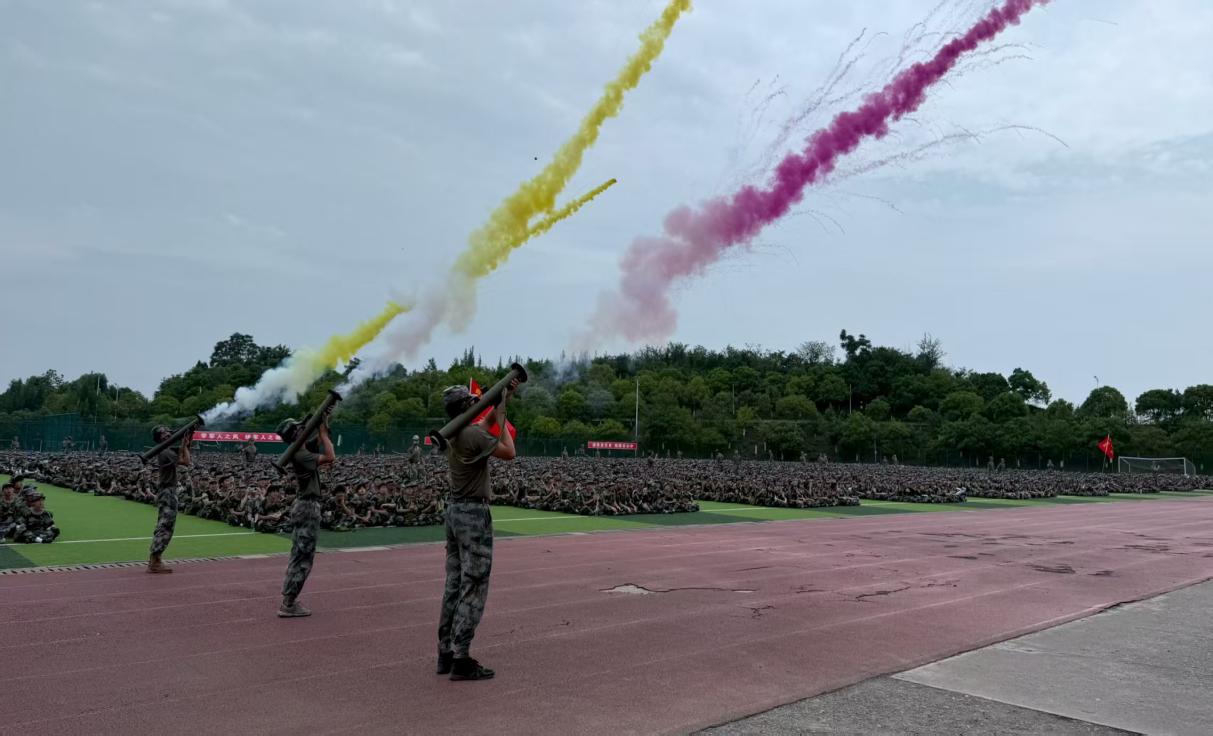 在训练场上,新生们精神饱满,列队整齐,迈着坚定的步伐有序行进。活动特别安排了军事装备展示与特色表演。崭新的军用车辆载着飘扬的红旗缓缓驶过,让新生近距离感受军事现代化的成果;多彩的信号弹划破长空,在天际留下绚丽轨迹,为活动增添了庄严而热烈的氛围。