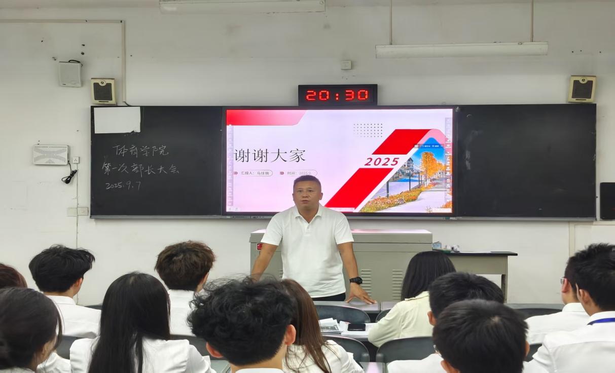 9月7日晚,体育学院团总支学生分会部长会议在钟灵楼召开。学工办副主任张双全、团总支书记李思雨出席会议,学生会各分管主席及10个部门部长参加会议。
