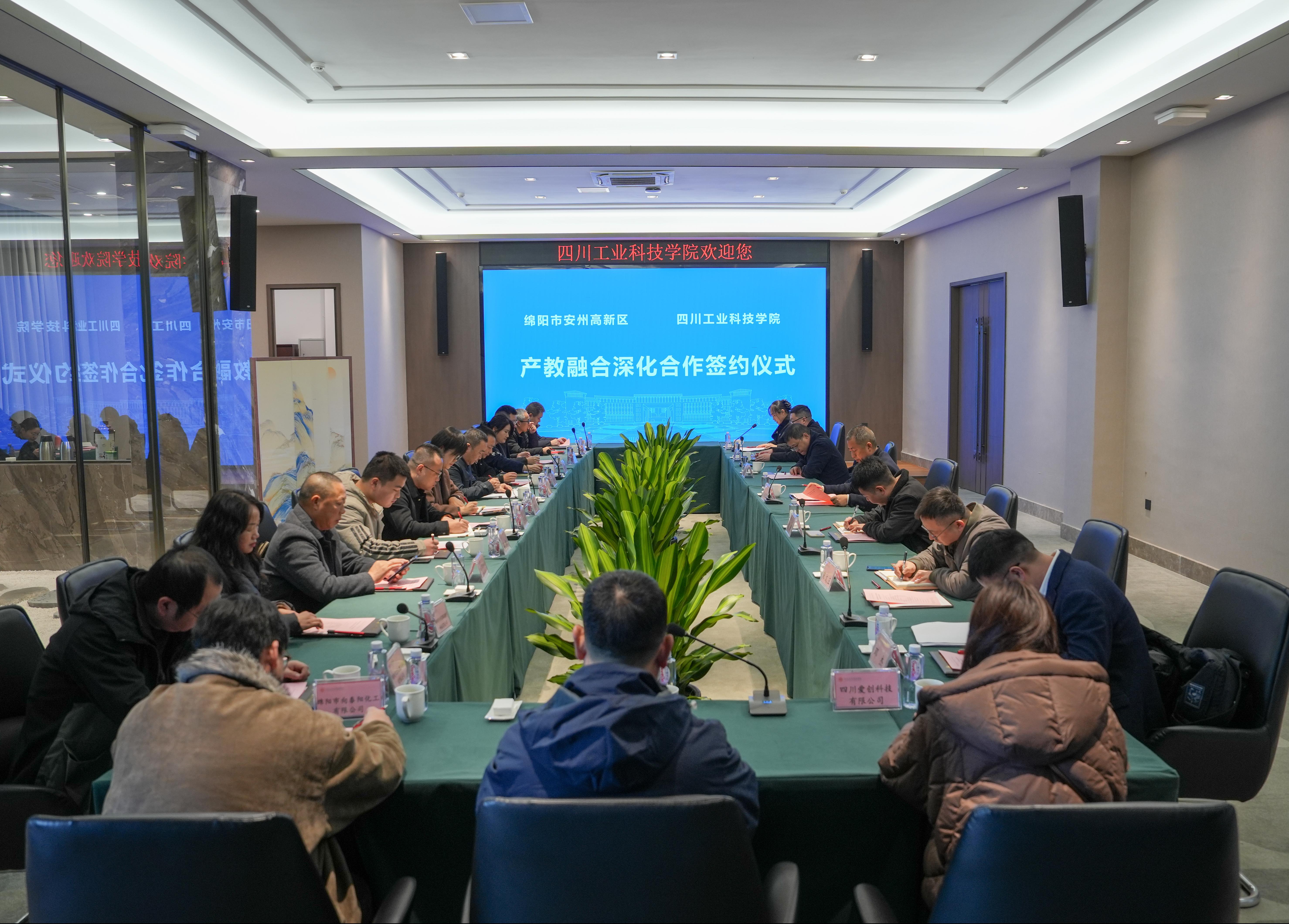 为深入贯彻落实国家产教融合发展战略,推动教育链、人才链与产业链、创新链深度融合,12月4日下午,学校与绵阳市安州高新区产教融合深化合作签约活动在学校龑江E102会议室顺利举行。学校副校长张继华与学校相关学院、处室等7名代表出席活动,安州高新区党工委书记陈劲松、安州区产业合作发展中心主任刘碧华、安州区工业信息化和科技局副局长寇竹、安州区发展和改革局副局长王兴华、安州高新区科创局局长张蕾以及安州高新区重点企业代表共15人参加,校地校企齐聚一堂,共商合作大计,共绘发展蓝图。