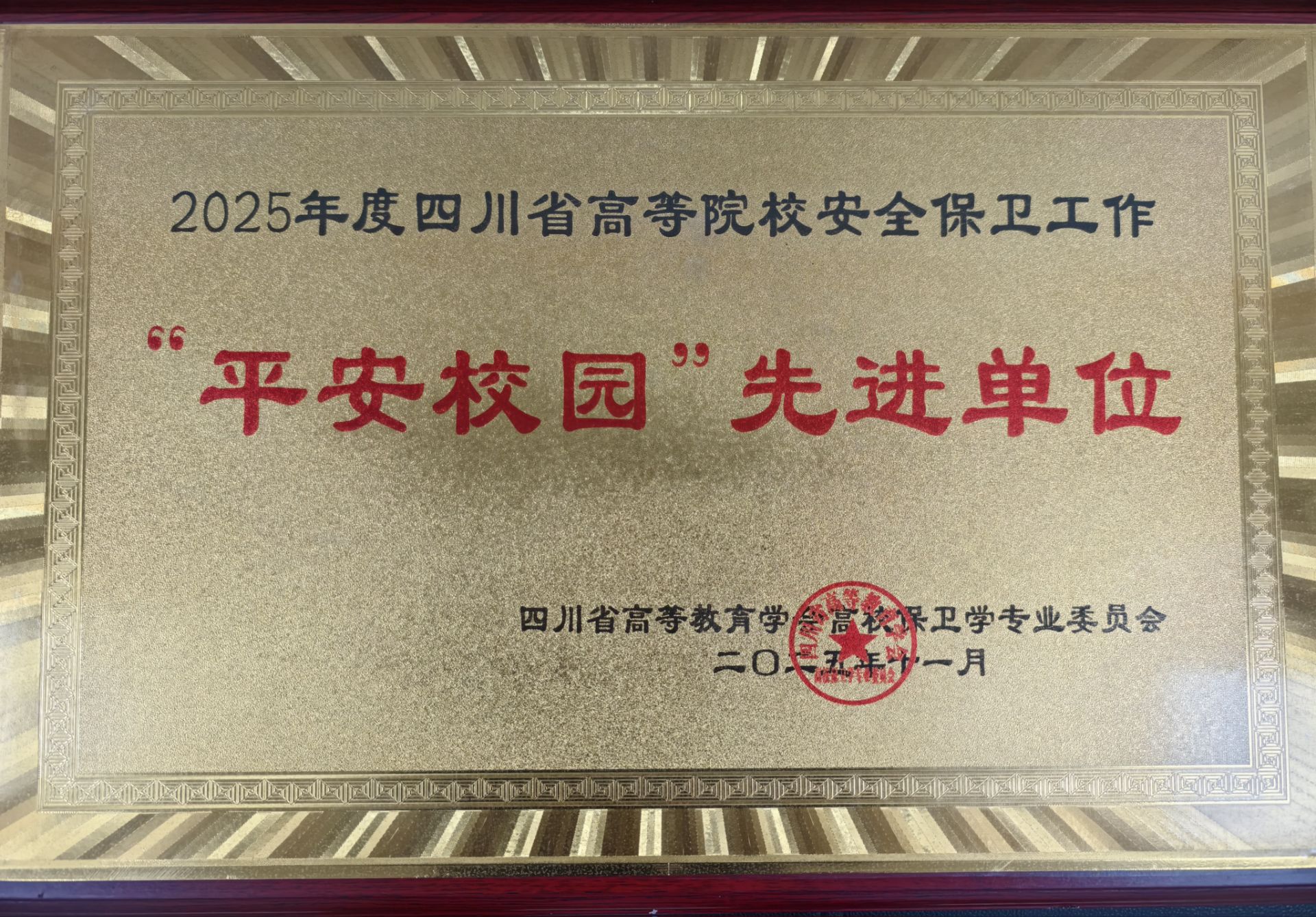 近日,四川省高等教育学会高校保卫学专业委员会发布《关于表彰2025年度四川省高校“平安校园”建设先进单位、先进个人的决定》(川高教会保卫〔2025〕10号),学校荣膺“2025年度四川省高校‘平安校园’建设先进单位”称号。