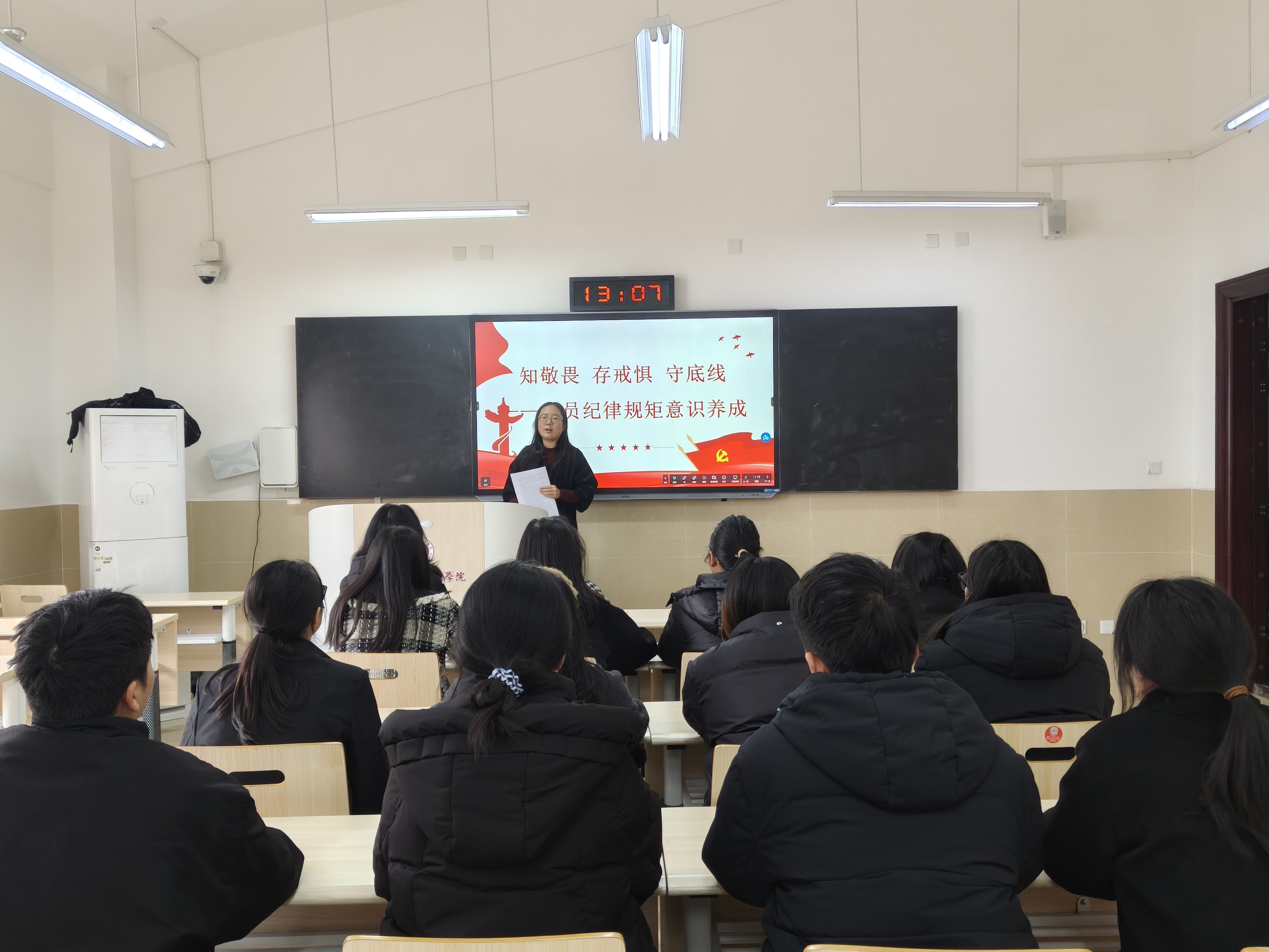 12月9日中午,大健康学院食品系第二党支部在龑江B501开展以“知敬畏、存戒惧、守底线”为主题的党课活动。本次党课由大健康学院食品系第二党支部书记王艺主讲,全体在校党员及入党积极分子参加学习。
