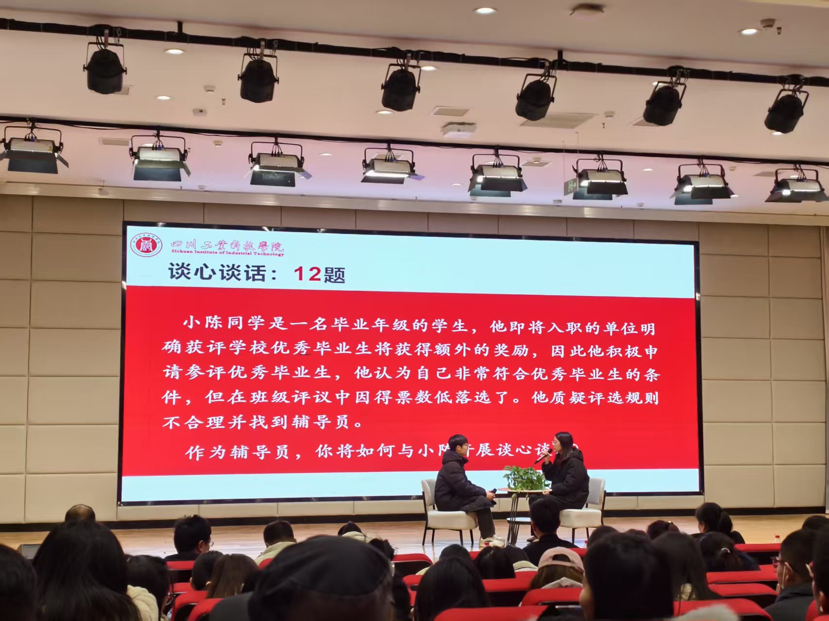 “谈心谈话”环节高度还原真实工作场景。面对由工作人员扮演的、因考试作弊面临处分而情绪崩溃的“学生”,赵雷老师坚持以生为本,通过共情引导与规则教育,有效疏导学生情绪,指明了改正与成长的路径。在处理学生对评优结果提出质疑的复杂情况时,都润萍老师以充分的政策依据、清晰的沟通逻辑和耐心的解释说明,成功化解了学生的困惑与不满,展现了高超的沟通艺术与矛盾调处能力。