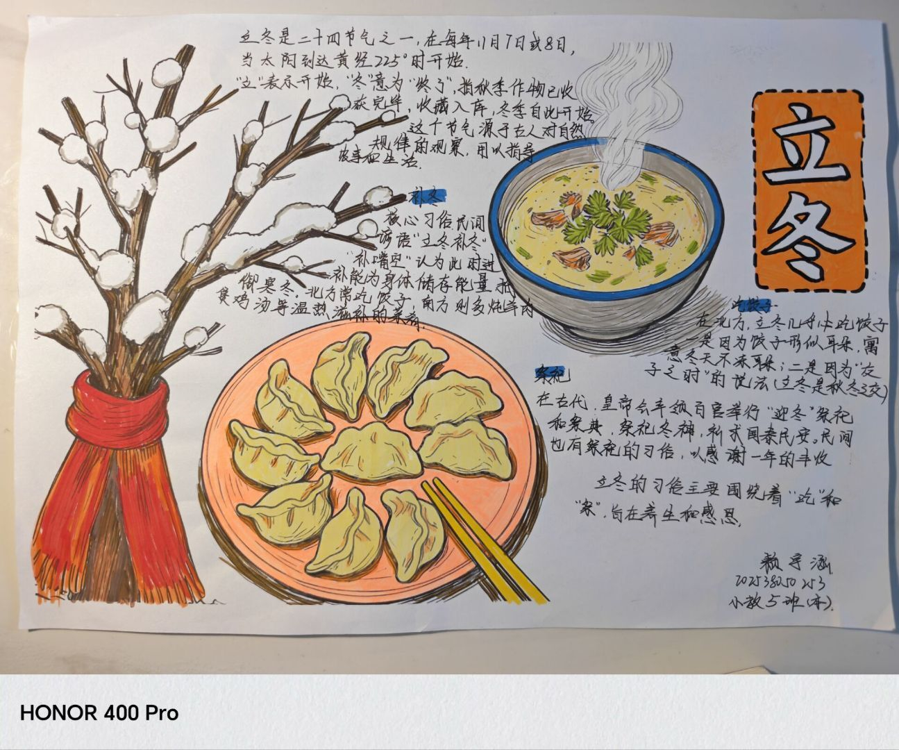 时值立冬节气,社区组织开展了“寒始立冬,手绘暖光”主题创作活动,旨在弘扬中华优秀传统文化,提升学生动手实践与艺术创作能力。同学们积极参与,提交的作品主题鲜明、风格多样,既有描绘银装素裹、瑞雪丰年意境的传统冬景,也有表现五谷丰登、阖家团圆等生活气息的现代构图。色彩与线条的运用展现了学生们对立冬文化的个人理解与丰富想象力,活动有效增强了学生对传统节气的认知与文化认同。