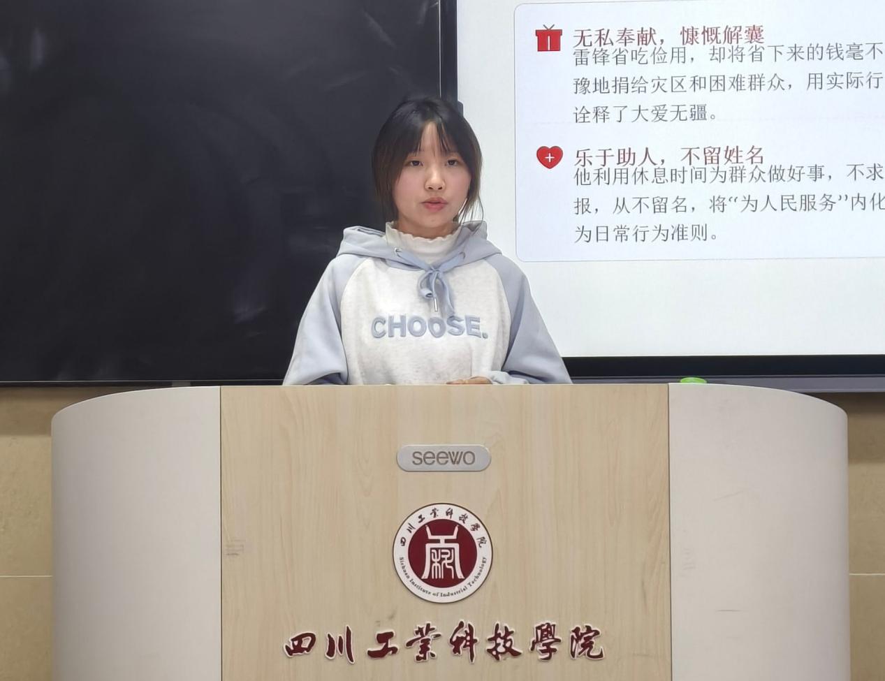 活动在主持人郭秋叙的精彩开场中拉开帷幕。她号召同学们以雷锋同志为榜样,在学习和生活中自觉传承奉献、友爱、互助、进步的优良品质,以实际行动让雷锋精神在新时代绽放光芒。
