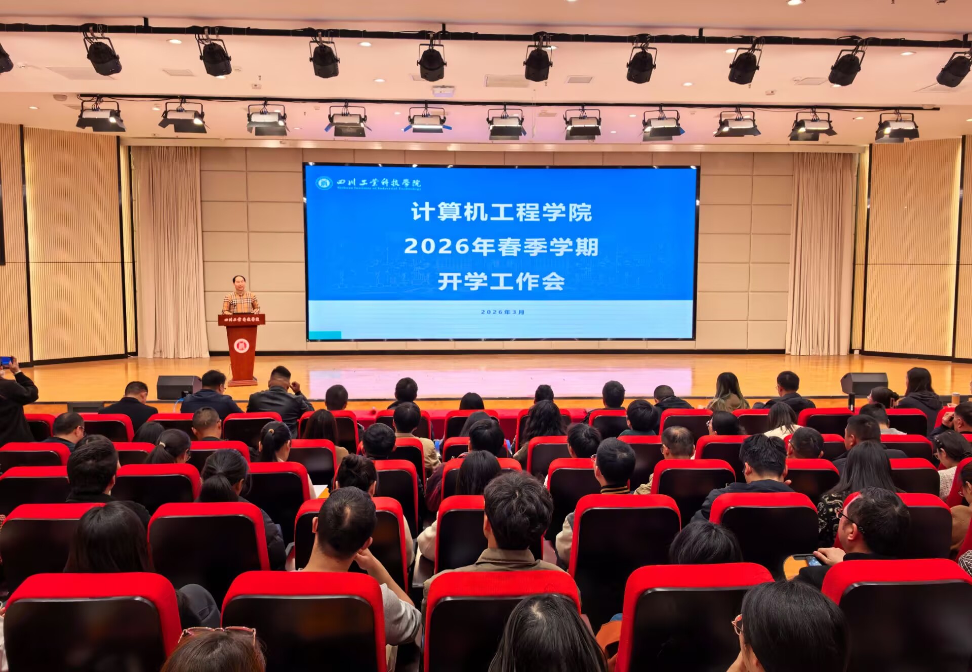 3月5日下午,计算机工程学院在龑江C区学术报告厅召开新学期全体教职工大会。学院领导班子及全体教职工参加会议。