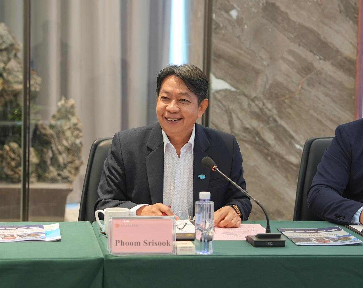 Phoom Srisook对学校的热情接待表示感谢,他介绍了泰国南邦国际科技学院的办学特色、课程体系以及国际合作经验。他提到,两校在学科设置与人才培养目标上有着诸多契合点,合作前景广阔,期待双方能够建立长期稳定的合作关系,为两校师生创造更多国际化学习与交流的机会。