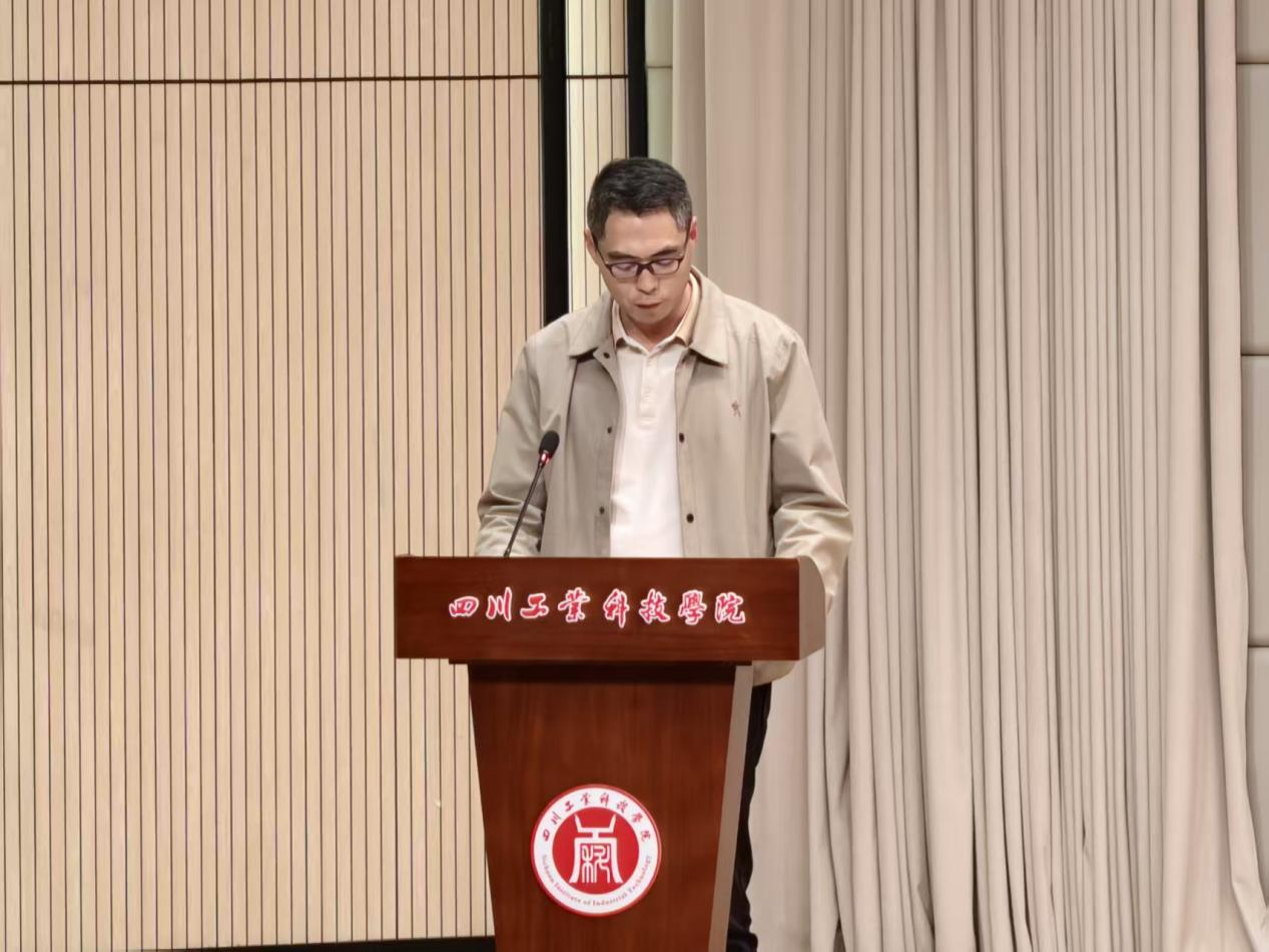 大会伊始,教育学院副院长熊明清宣读了《四川工业科技学院教育学院 广州诚唐科教投资有限公司关于对2026届优秀实习生表彰的通报》。通报指出,在2026届毕业生专业实习工作中,全体实习生恪尽职守、勤奋学习,展现出扎实的专业素养和良好的精神风貌。经综合评审,决定授予邓俊秀、吴思梦等34名同学“优秀实习生”荣誉称号。熊明清勉励受表彰的同学珍惜荣誉、再接再厉,并号召全体同学以先进为榜样,锐意进取、追求卓越。