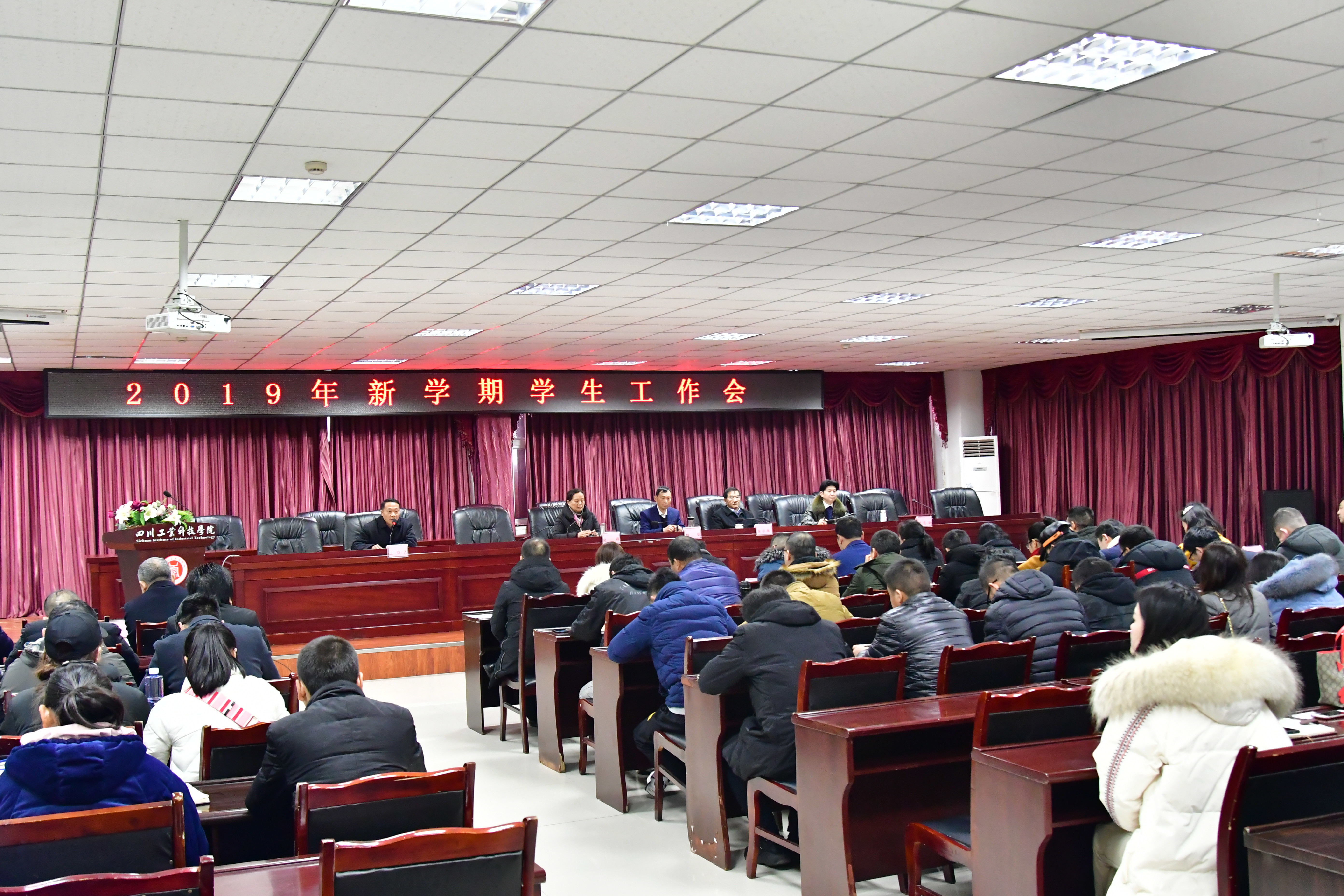 为创造一个良好的开端,明确奋斗目标,营造和谐、浓厚的开学氛围,以良好的精神风貌投入新学期的工作和学习中,2月23日下午,四川工业科技学院2019年新学期学生工作会议在图书馆D-408举行。学校党委书记魏崛、校长张小南、党委副书记倪霞、学生处处长邓成奉、各职能部门负责人和各二级学校党支部书记、副书记,学工办主任、副主任,学工部全体老师以及全体辅导员出席本次会议,会议由学生处副处长彭久军主持。